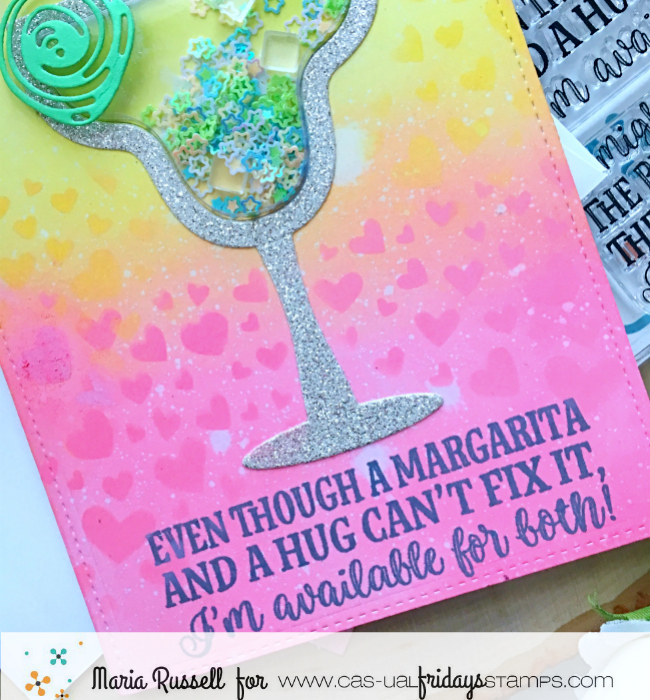 I think adding the “lime” on the margarita glass using the Garden Fri-Dies just added a cute touch to the whole card design. Here’s a closer look: