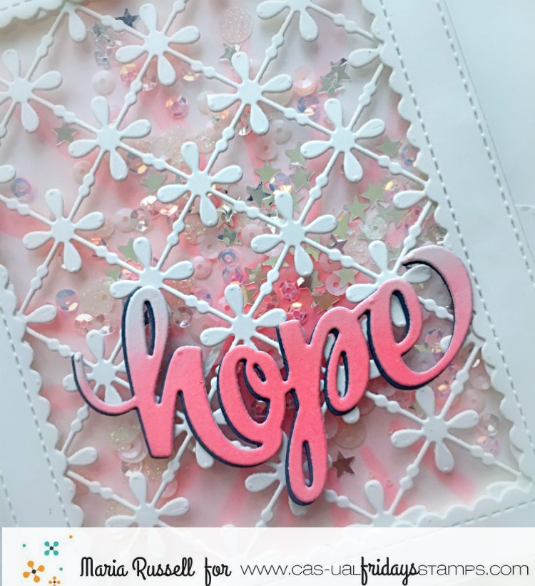 I used some light pink and crystal sequins mix with sparkling stars for my shaker element. This card is so pretty in real life.
