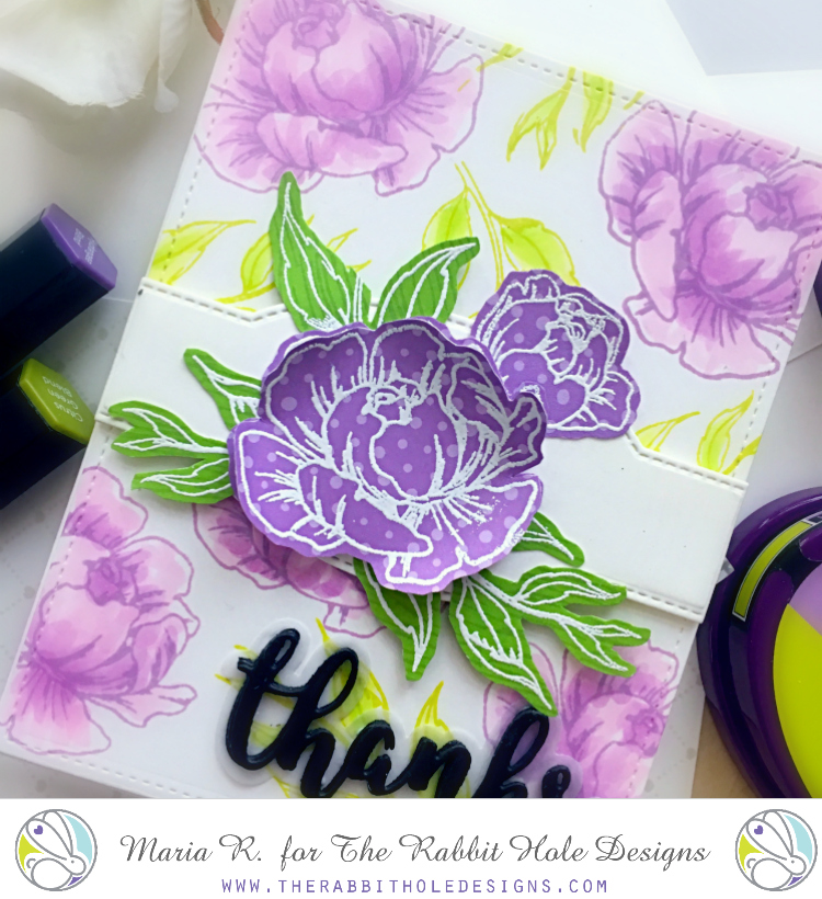 Before I give you the details on how I made my card, this is to let you all know that this is going to be my last post as a DT member for The Rabbit Hole Designs. My schedule has been really crazy lately and I am trying to cut back on commitments. I have thoroughly enjoyed being on this journey with MaryAnn Samuelson and Heather Ferguson (co-owners of TRHD) with the rest of the design team members. This “thank you card is for you guys!