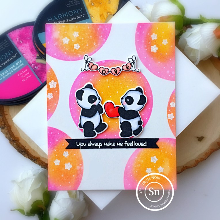 It’s National Panda Day and I am celebrating by sharing this cute card, showcasing Spectrum Noir (Water-reactive) Harmony Inks, SN Classique Markers, SN Watermark Ink, SN Alcohol Proof Dye Ink, and Panda Play stamp and die set by LDRS Creative.