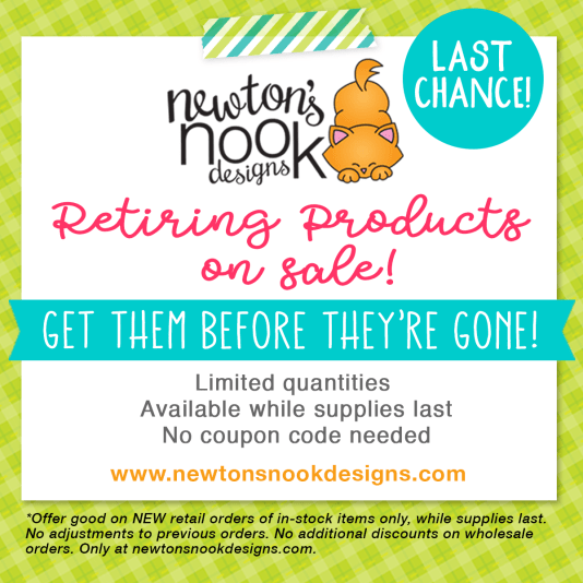 I hope you like my projects today and got inspired. The supplies I used are listed and linked below. Don’t forget to check out the Retiring Products Category by Newton’s Nook to see what is going away and grab your favorites now before they are gone for good! Here is a direct link to the retiring products page: http://www.newtonsnookdesigns.com/retiring-products/.