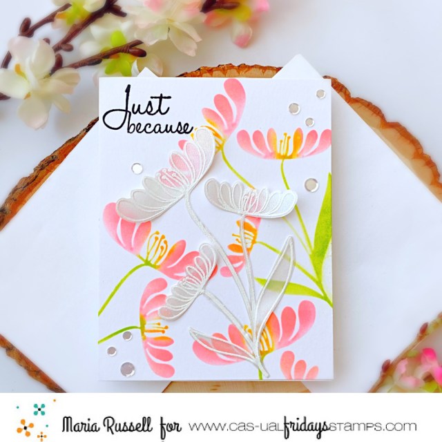 Hey CAS-ual Fridays fans! It’s finally spring, yay! I went to the grocery store today and saw a plethora of flowers ranging from baby’s breath to tulips! This is my inspiration for today’s card.