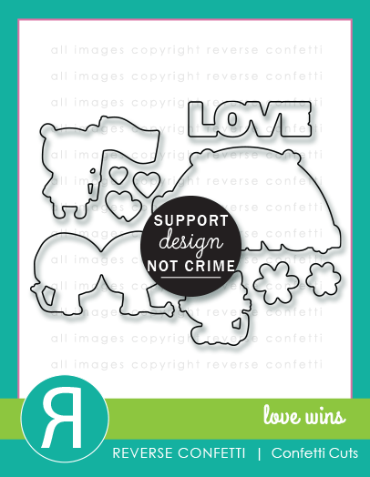 The images from the Love Wins Stamp Set were stamped on some X-Press It blending card stock and colored with alcohol markers. I die-cut the images using the Love Wins coordinating dies.