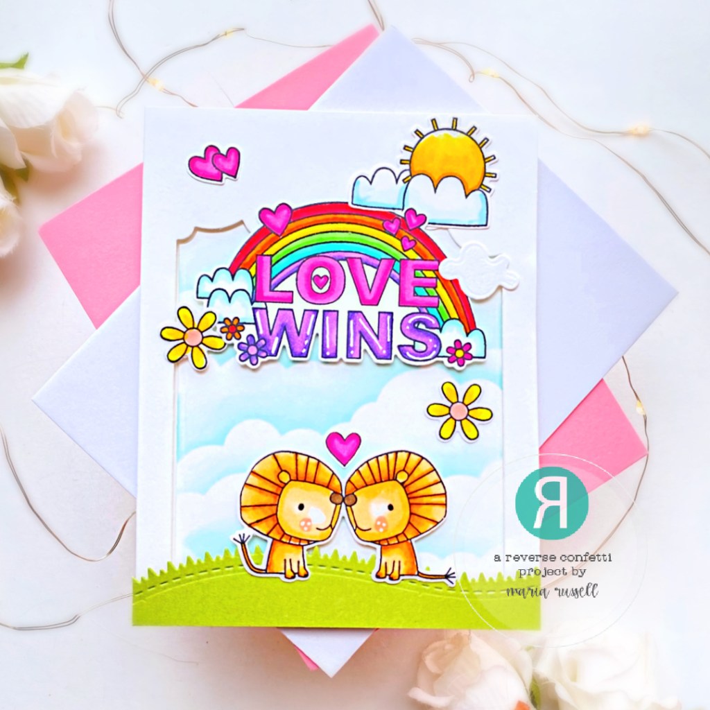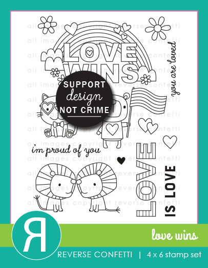For today’s reveal, we are showcasing the Love Wins Stamp Set and Love Wins Coordinating Confetti Cuts. I also used the Head in the Clouds Cover Panel. A portion of sales will be made to both Human Rights Campaign and The Trevor Project.