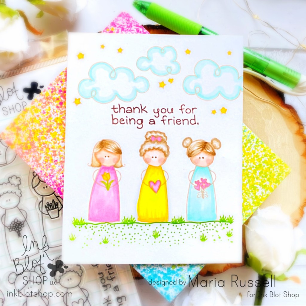 I am SUPER EXCITED because today is my very first post featuring products by Ink Blot Shop. This super simple no-line coloring card showcases the Little Sweeties Stamp Set along with the Get Grounded Stamp Set.