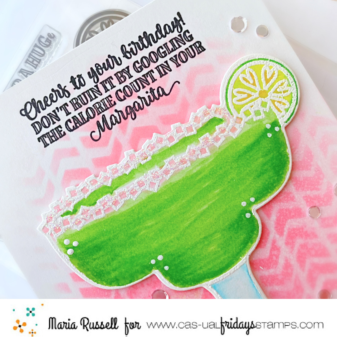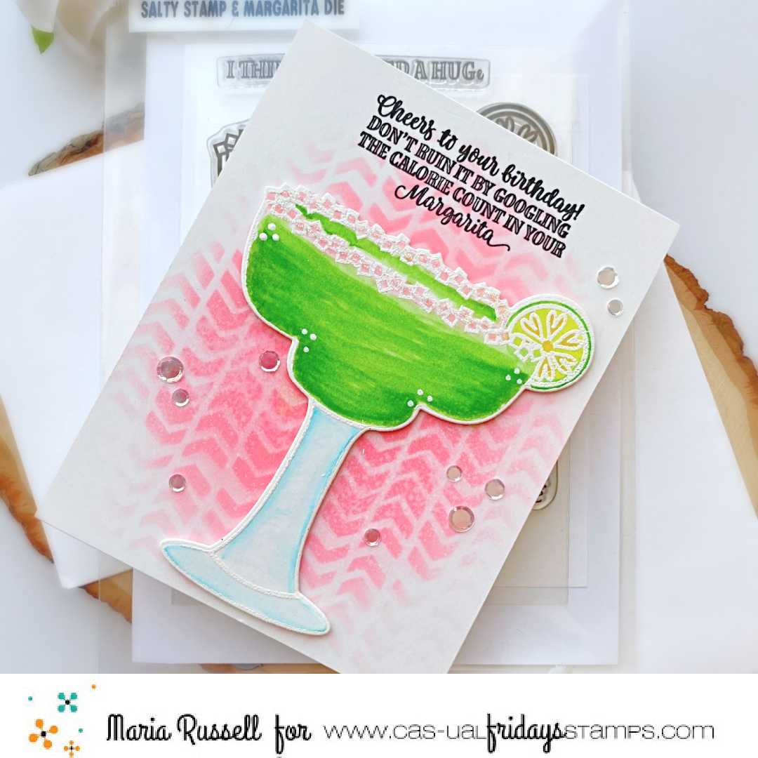 Hello my crafty friends! I’m back on the blog today for Cas-ual Fridays Stamps sharing a fun birthday card, showcasing one of my favorite stamp set from the latest release, called Salty Stamp Set along with the Margarita Glass Die and Chunky Chevron 6×6 Stencil.