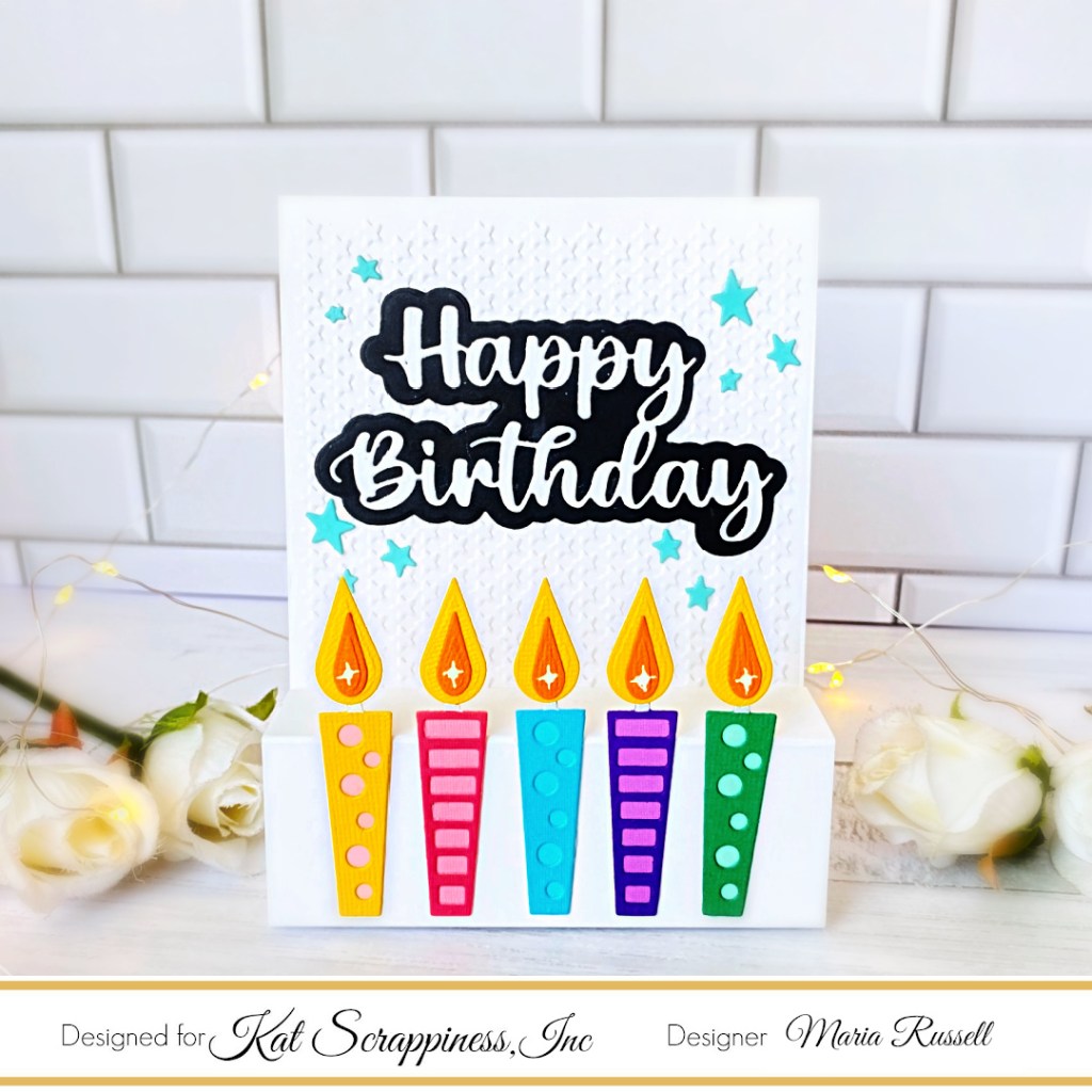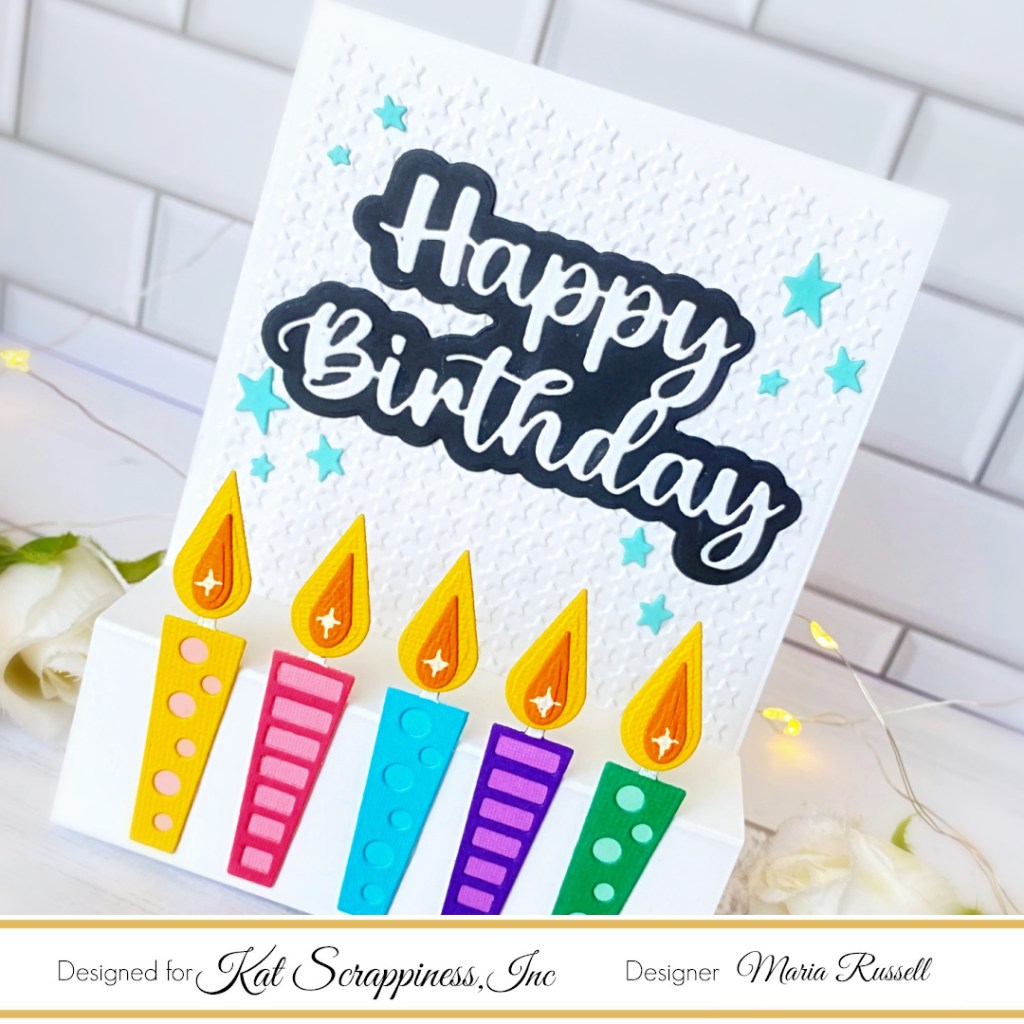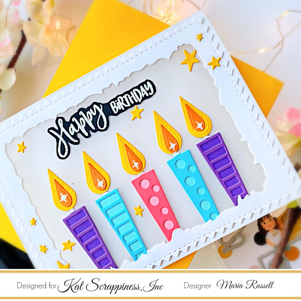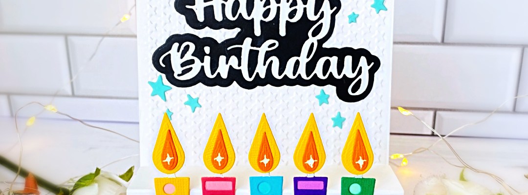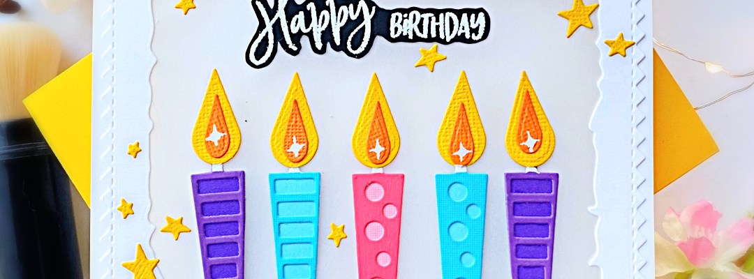 The candles were die-cut in different colors or card stock and adhered together with liquid glue. I finished the design by adding the sentiment and yellow stars for interest and texture.