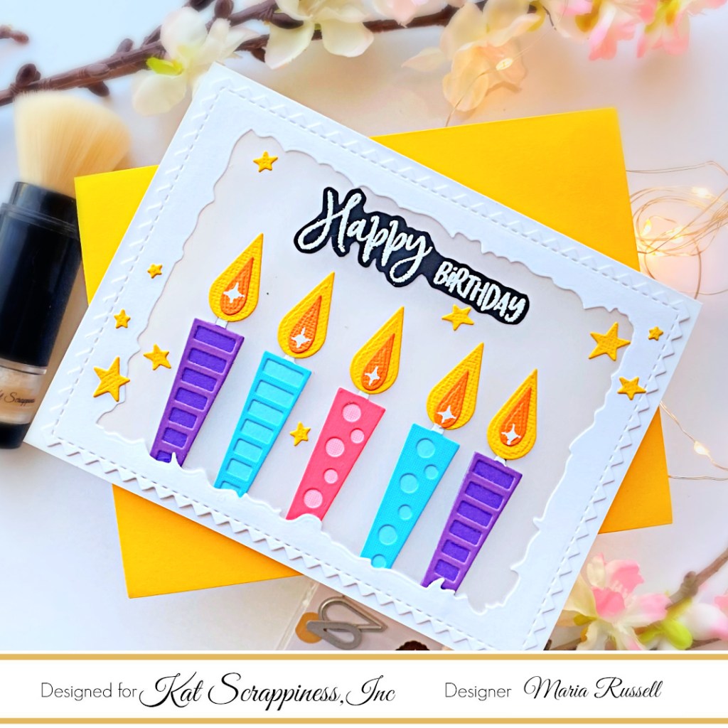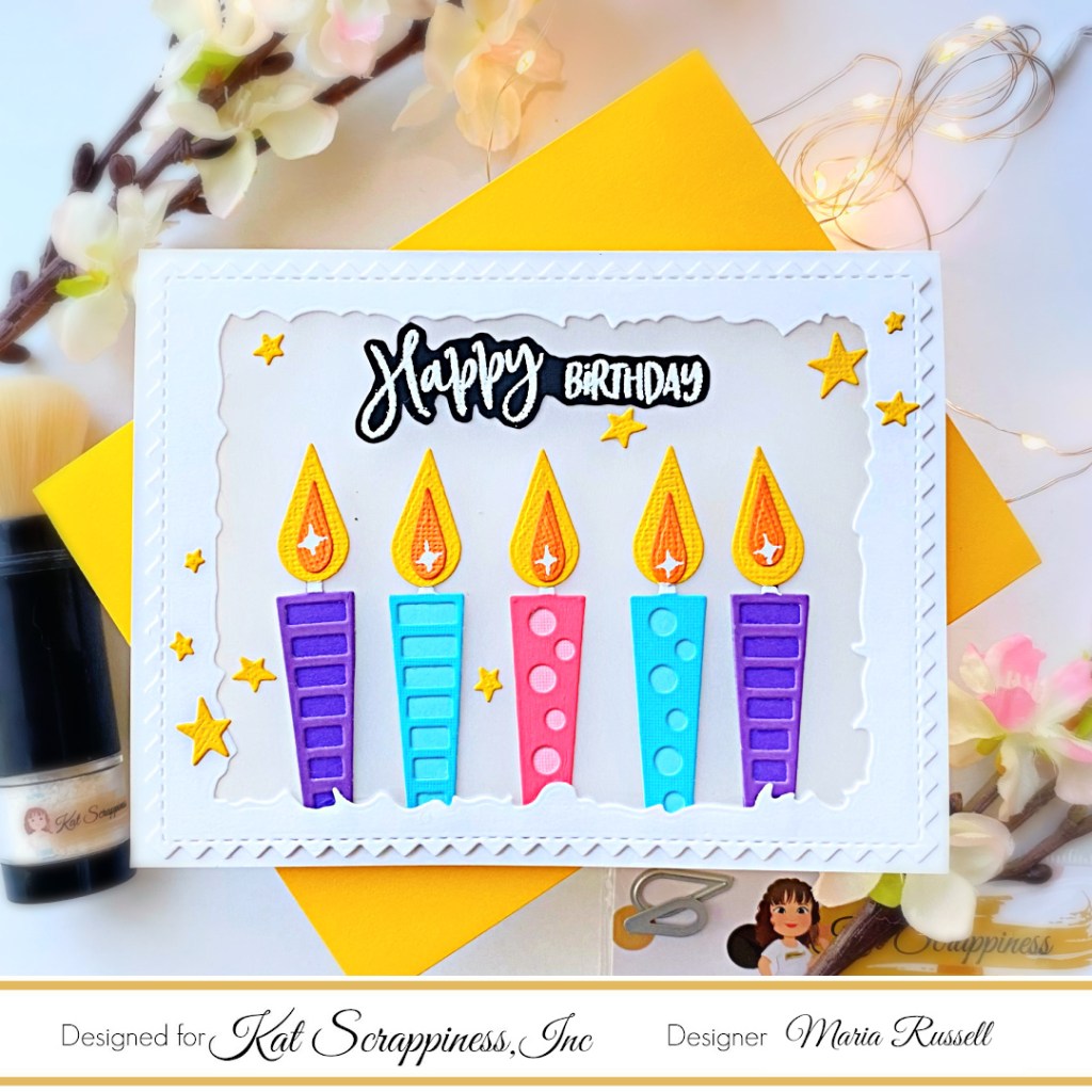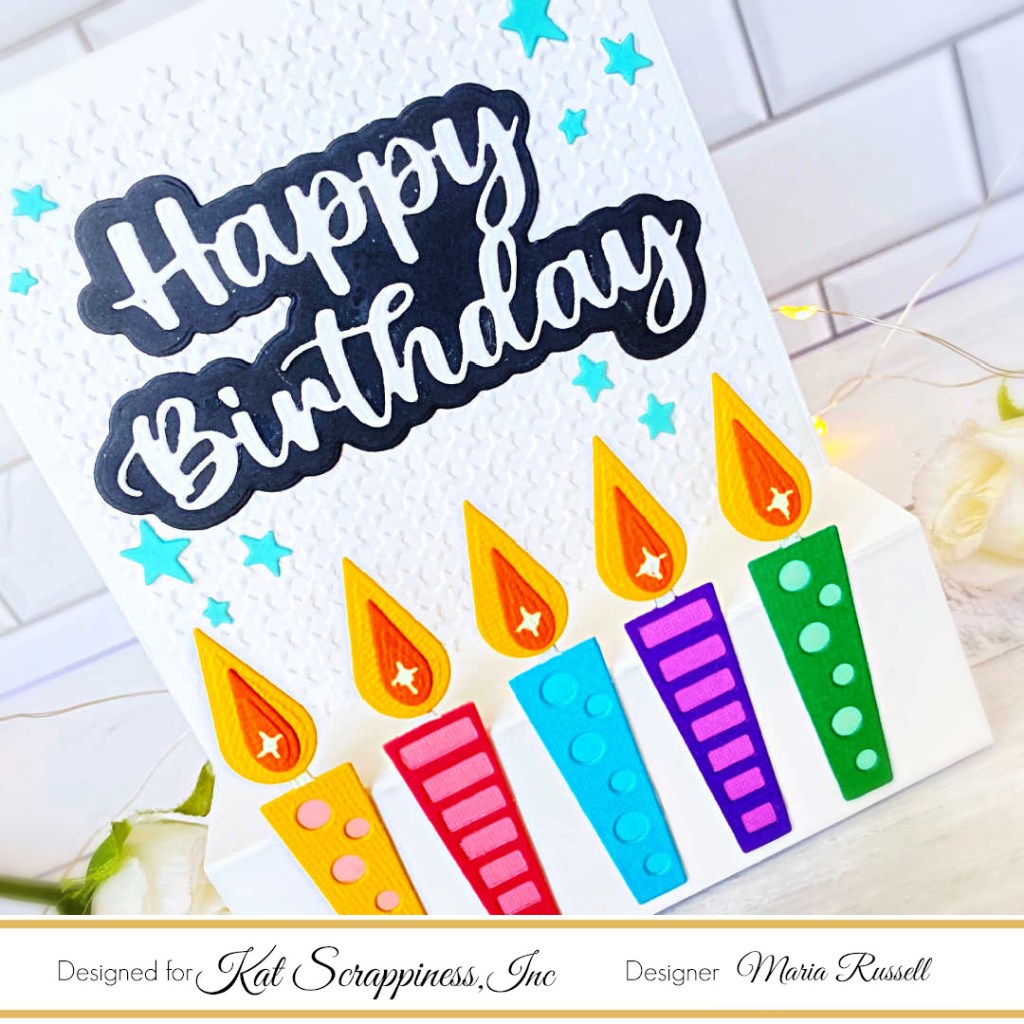 The candles were die-cut in different colors or card stock and adhered together with liquid glue. I finished the design by adding the sentiment and yellow stars for interest and texture.