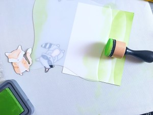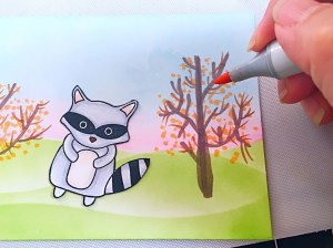 I stamped my image on Neenah solar white card stock and colored him in with my Copic marker. I fussy-cut the image and adhered it on my tag.