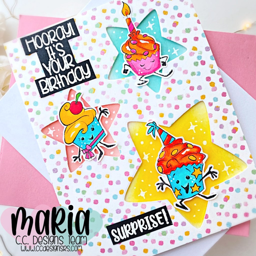 Welcome to the C.C Designs Birthday Social Media Hop! It’s our 15th Anniversary/Birthday and we are celebrating in a big way! Hop along for your chance to WIN one of two $15 G.C to the store! We will pull one from Instagram and one from the blog comments AND 4 lucky Instagram, YouTube, and Blog Subscribers will get our SPECIAL Cupcake Stamp Set for FREE so make sure you follow and subscribe. PLUS Use Code: 15BD for 15% off your order the entire month of April!