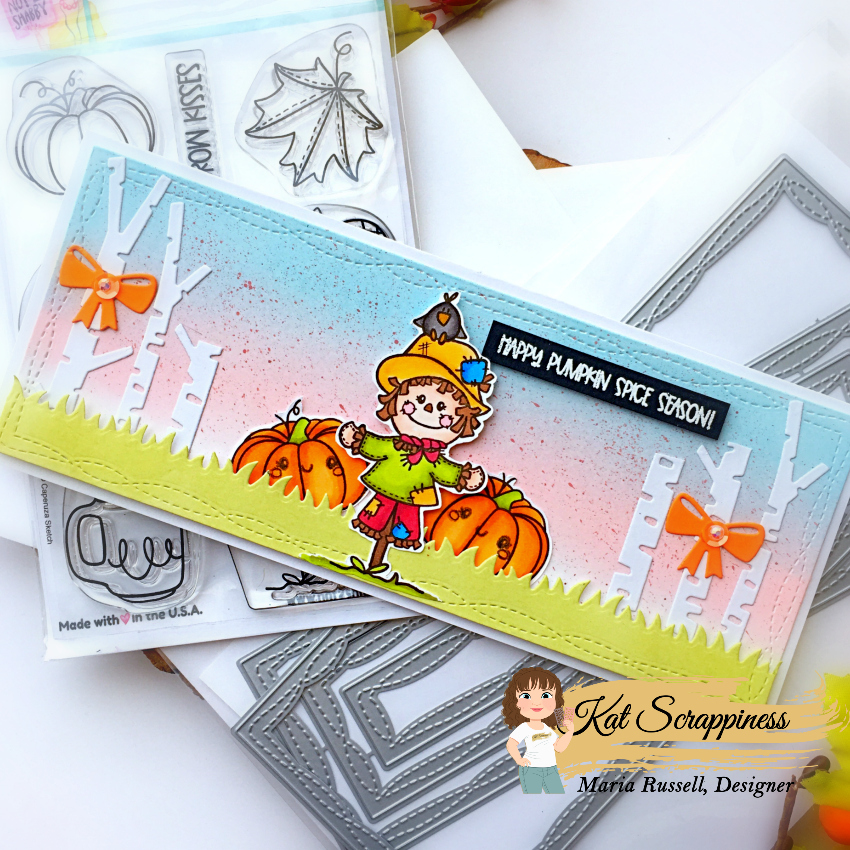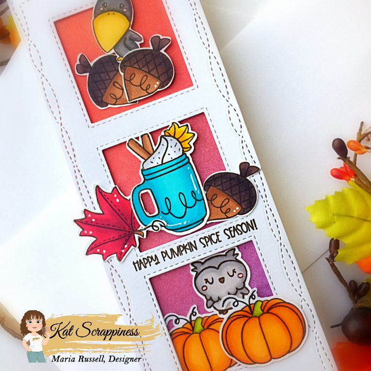 For this event, we are showcasing the Double Stitched Nesting, Wonky Stitched Nesting and Tri-Frame slimline dies from Kat Scrappiness and the“Happy Fall” Stamp set from Not 2 Shabby.