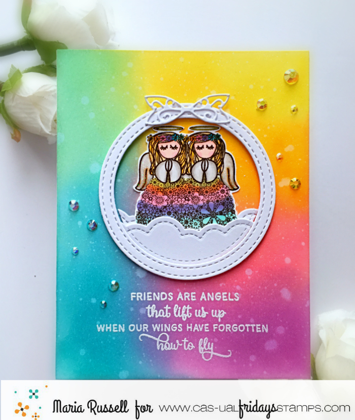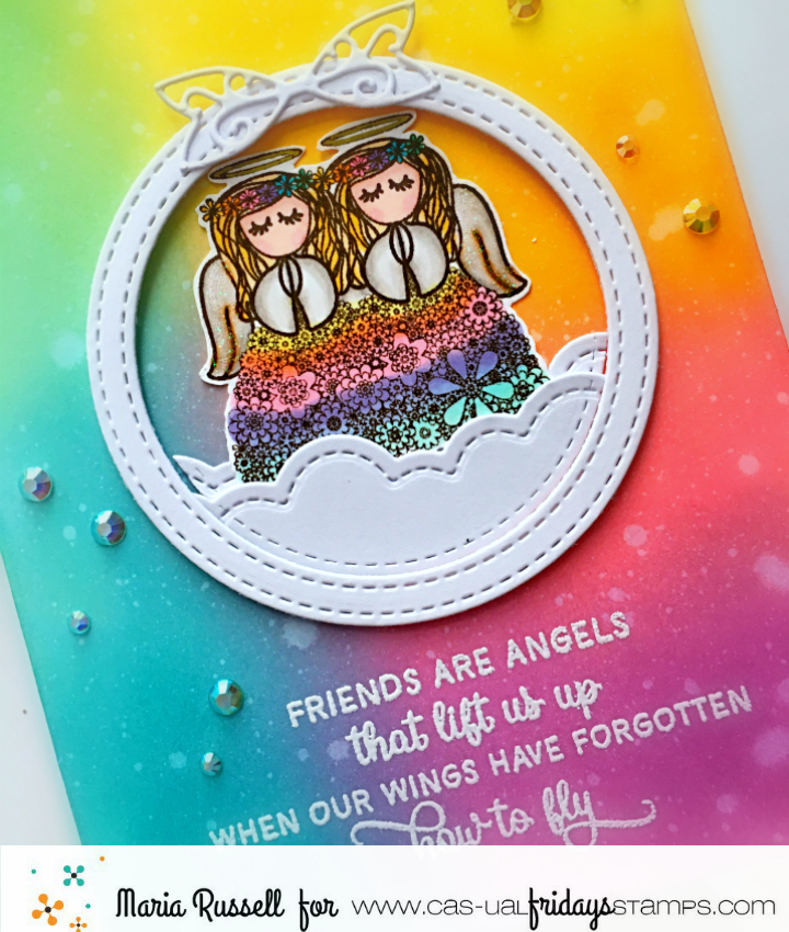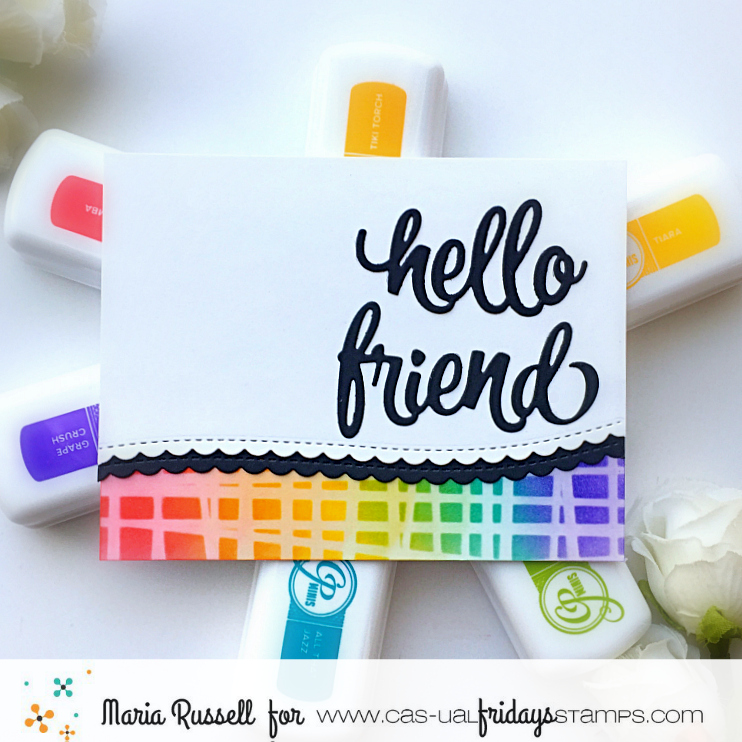 For this hop, I am showcasing the Happy Birthday stamp set and SweetFriend Fri-dies by Cas-ual Fridays, along with the AMAZING CP Minis – Carnivale Collection, CP Off The Loom Stencil, Oval Balloon Stencil, CP Minis – Life of the Party and CP mini ink in Midnight.