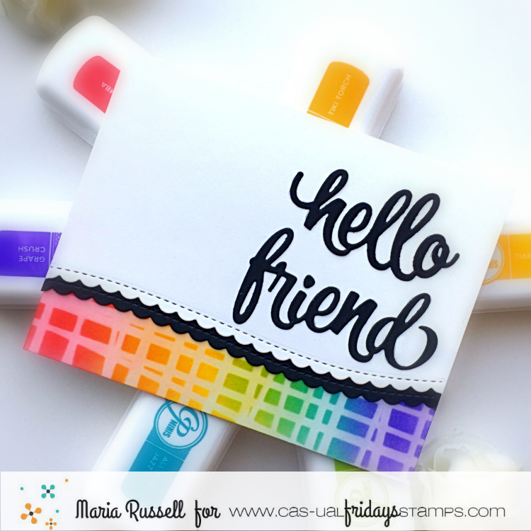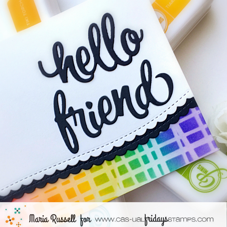 I finished my card design by die-cutting the “hello friend” using the Sweet Friend fri-dies and adhering it onto the card with liquid glue. Here’s another look: