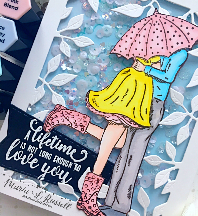 This card just cracks me up!  I wanted to create my scene to make it look like they are hanging out and floating in a glass!  I love the shaker elements that I used for the card too.  Here’s a close-up: