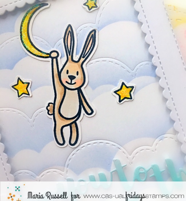As soon as I saw this stamp set, I knew I wanted to create a colorful background and layer the cascading stars with some Moonstone Glimmer paste.