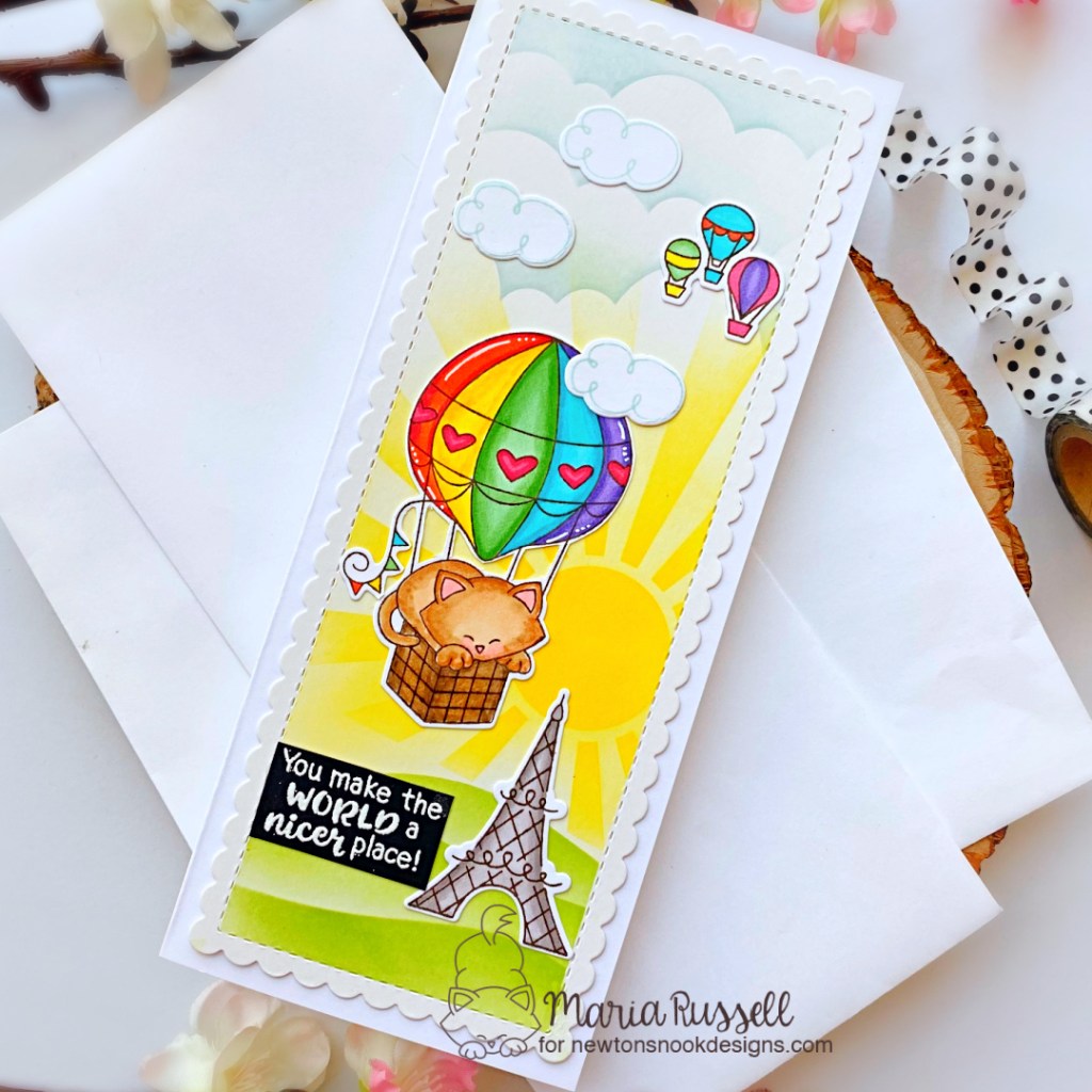 I stamped the sentiment with VersaMark ink on some black card stock and sprinkled some white embossing powder, then heat-set with my heating tool. I used the coordinating die to cut it out and foam-mounted the sentiment on the card for added dimension. Lastly, I applied stickles to the images for more interest to finish the design. Here’s another look: