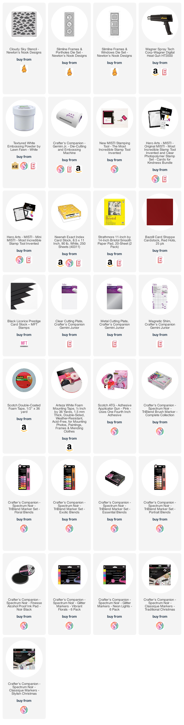 I hope you like my cards today! The supplies I use are listed and linked below. Don’t forget to leave a comment on each stop for a chance to win one of the (2) $30 Gift Certificates by both companies today. Thanks for stopping by and happy stamping!