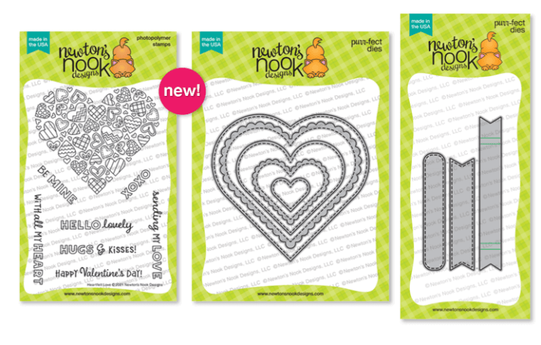 For the first day of the reveals we are featuring the Heartfelt Love & Heartfelt Love Stamp sets, along with the Heart Frames die that also coordinates with the previously released Banner Trio die set.