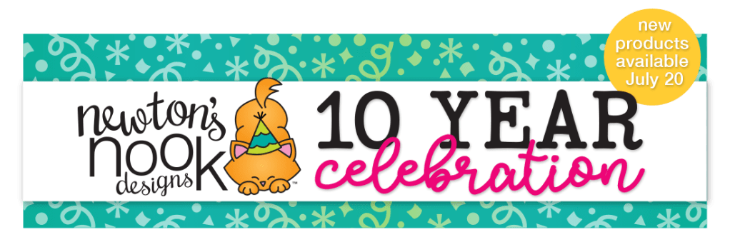 Hello and Welcome to the Newton’s Nook July Release and 10-year Birthday Celebration. I am so excited to show off the new products by Newton’s Nook Designs.  You also have a chance to win the stamp set being revealed each day so please read through til the end of the blog post to find out more info.  [Just a little important note:  I know some of you had difficulties finding the comments section.  If you would like to leave a comment to participate in the giveaway, the “comments section” will only be ever visible when a single post on Word Press is being viewed. Please click on this particular blog post and you will be able to leave a comment below.  Thank you!]