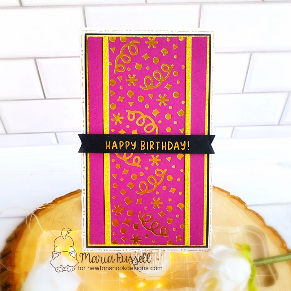 I opted for a cute mini slimline card to showcase the Confetti Hot Foil Plate. My Gemini Foil Press Machine gave up on me so I was only able to make one card, boohoo!