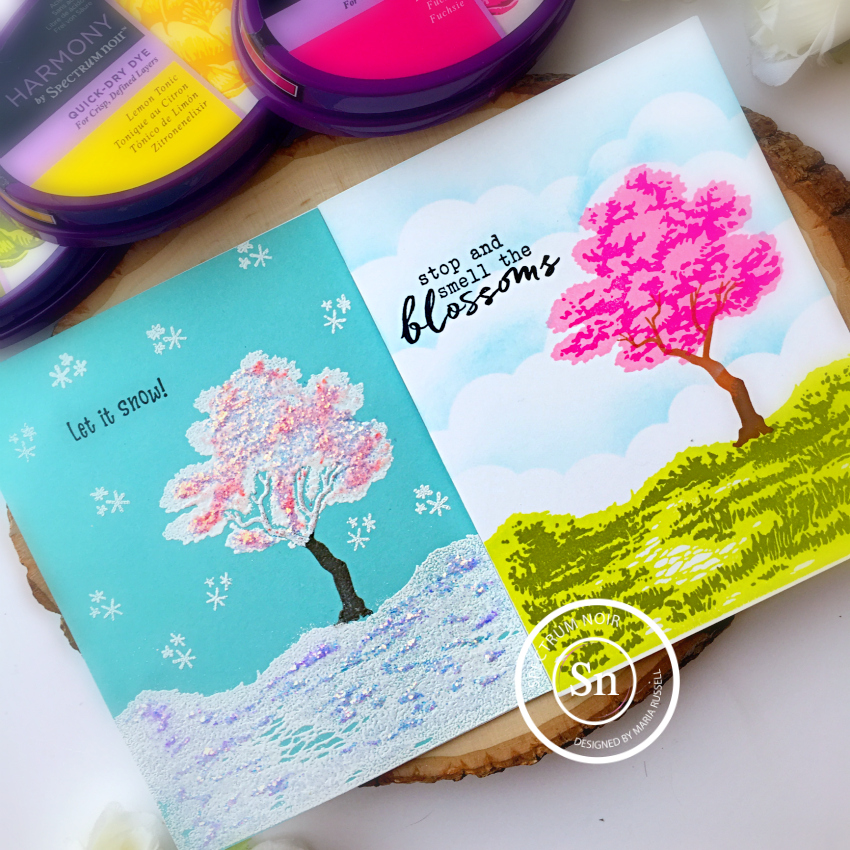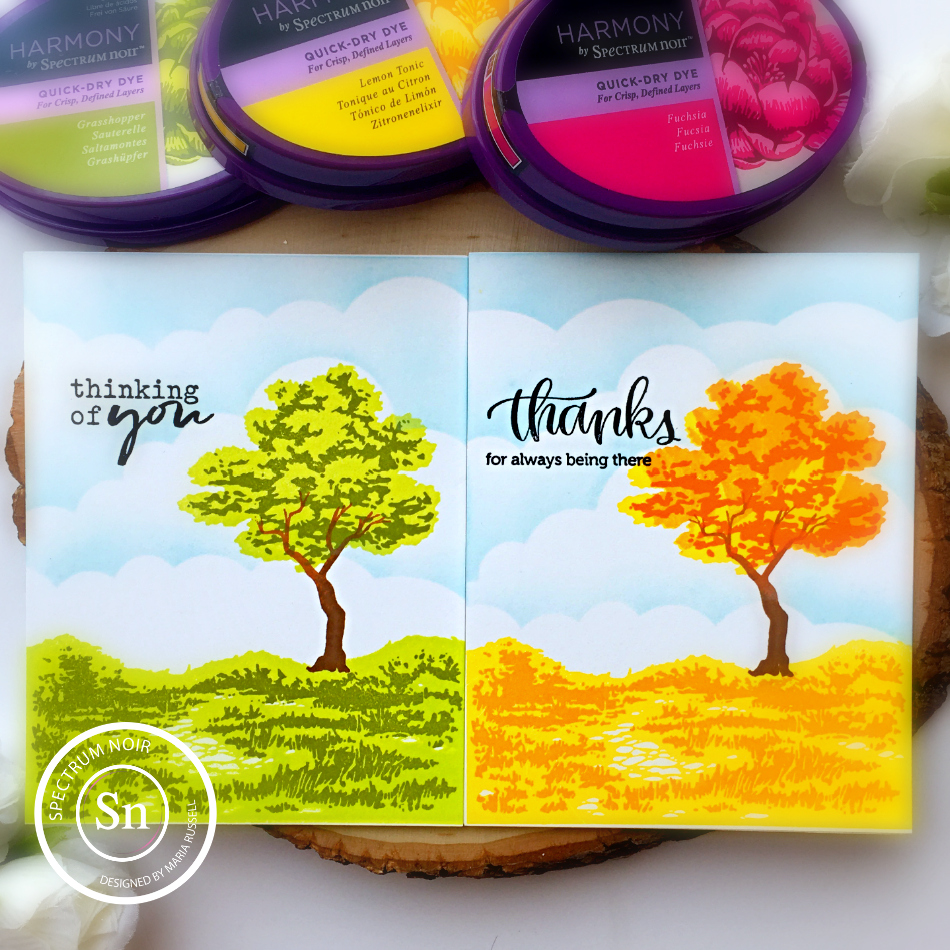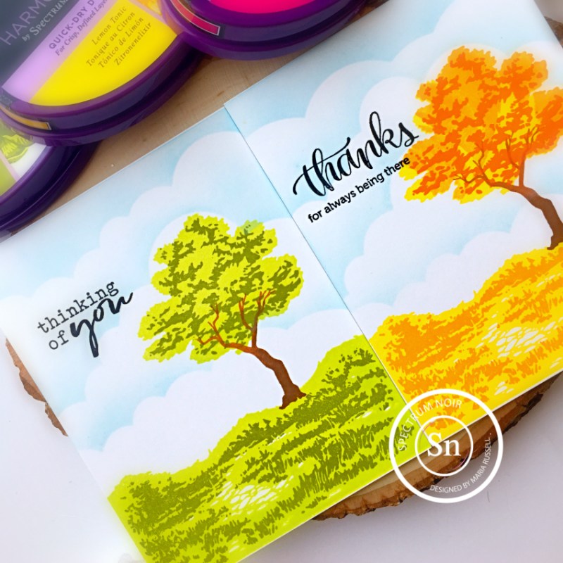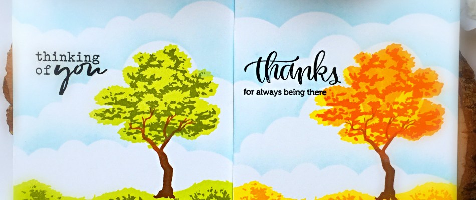 To finish my card design, I added the sun from the Sky Scene Builder die set and also added the small trees using a die from my collection. Here’s another look: