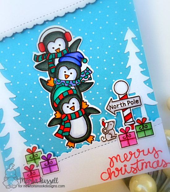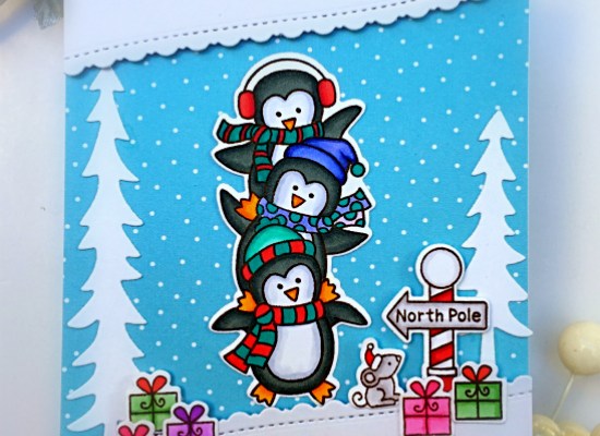 I stamped and colored the images in with my alcohol markers and die-cut using the coordinating dies. I assembled the card adhering and layering the pieces with some foam and liquid adhesive.