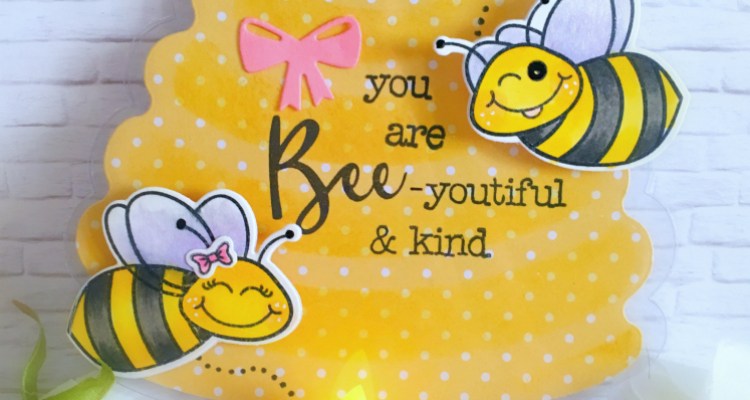 Hello my crafty peeps! It’s Maria here and I am back with you today to share this cheerful see-through card that I have made, showcasing the Bee Hive Card Honey Cuts, Honey Bee Hive Stencil and Mask, the Bee-You-Tiful sentiments with the Build-A-Bee stamp set and Build-A-Bee Honey Cuts.