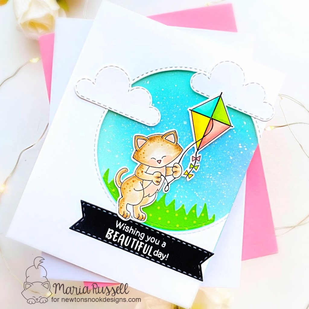 For Day 4, we are showcasing Newton’s Kite Stamp Set + Coordinating Dies that I paired up with the previously-released Circle Frames Die Set along with the Land Borders Die Set, Sky Scene Builder Die Set and Banner Trio Die.