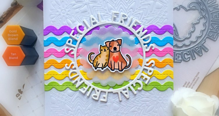 I used another die from my stash to add the “Woof” sentiment and finished my design by using my white gel pen to add some texture to the paw prints.