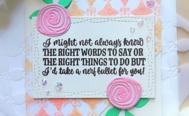 For my first project, I am showcasing the Starlequin stencil, and I mixed it up with the Garden Fri-dies and Supercalifragilistic stamp set.
