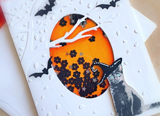 Fall is my favorite season and it is that time of the year when I start creating Halloween cards to send to my friends.  Is orange the new pink during Halloween? haha!  I’m back today with this very simple Halloween shaker card, showcasing the Toil & Trouble stamp set with matching dies.  This stamp set was released last year but they are still available at the shop.