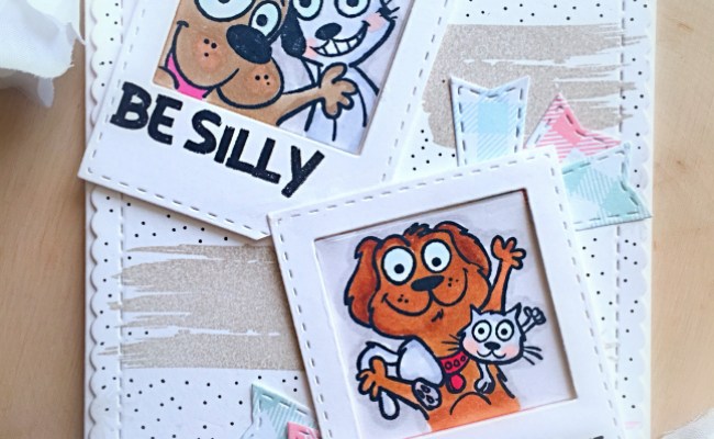 For my second card, I wanted to create a happy, summer-themed card. I used a stamp set that I recently purchased with this cute cat mermaid. I also used the Sunscape stencil die by Newton’s Nook Designs.