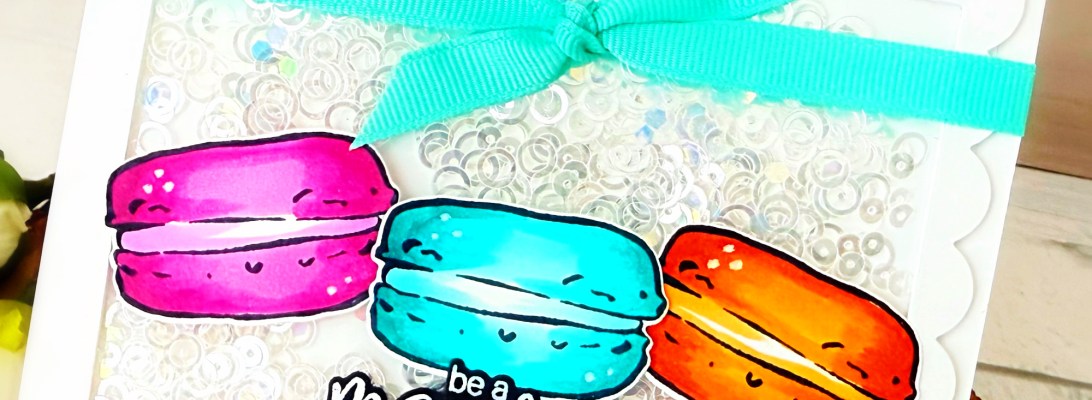 Hello everyone! Is anyone else feeling “blah” about the weather? It has been raining here in Florida, and the humidity kicked in full, uncomfortable mode! I wanted to create a cheerful, shaker-card, showcasing the Macarons Stamps Set and Coordinating Dies bundle.