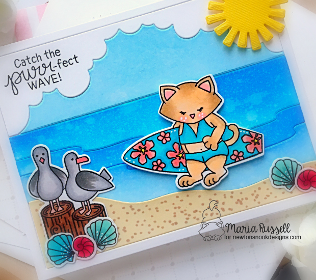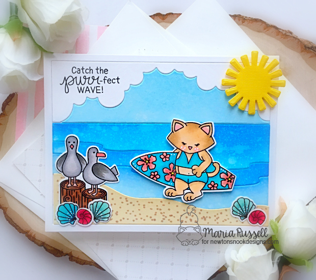 For Day 2, we are showcasing the Summer Moments and Newton’s Seashell stamp sets and their coordinating dies with the Retro Sun Stencil.