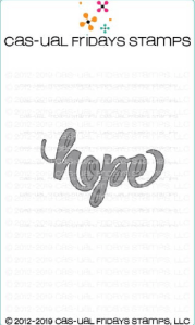 To finish my design, I die-cut the word “hope” twice using some gray and white card stock. I glued both pieces together to create dimension and adhered it onto the card panel with some liquid glue.