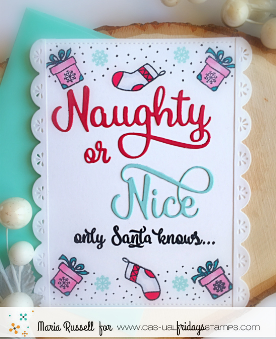 I am showcasing the Naughty’isms Stamp Set, Naughty Fri-Dies, Snow Fri-Dies and the Bushy Tailed stamp set.