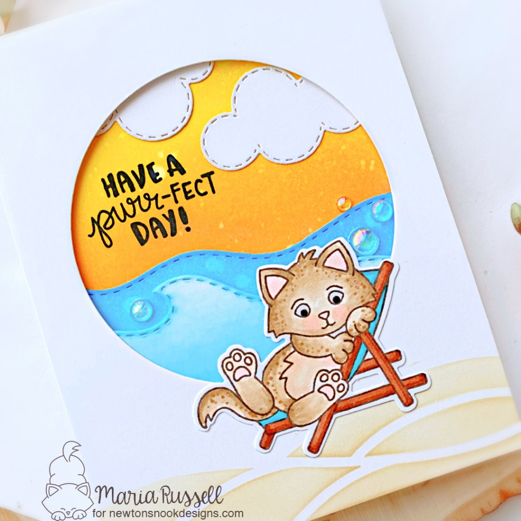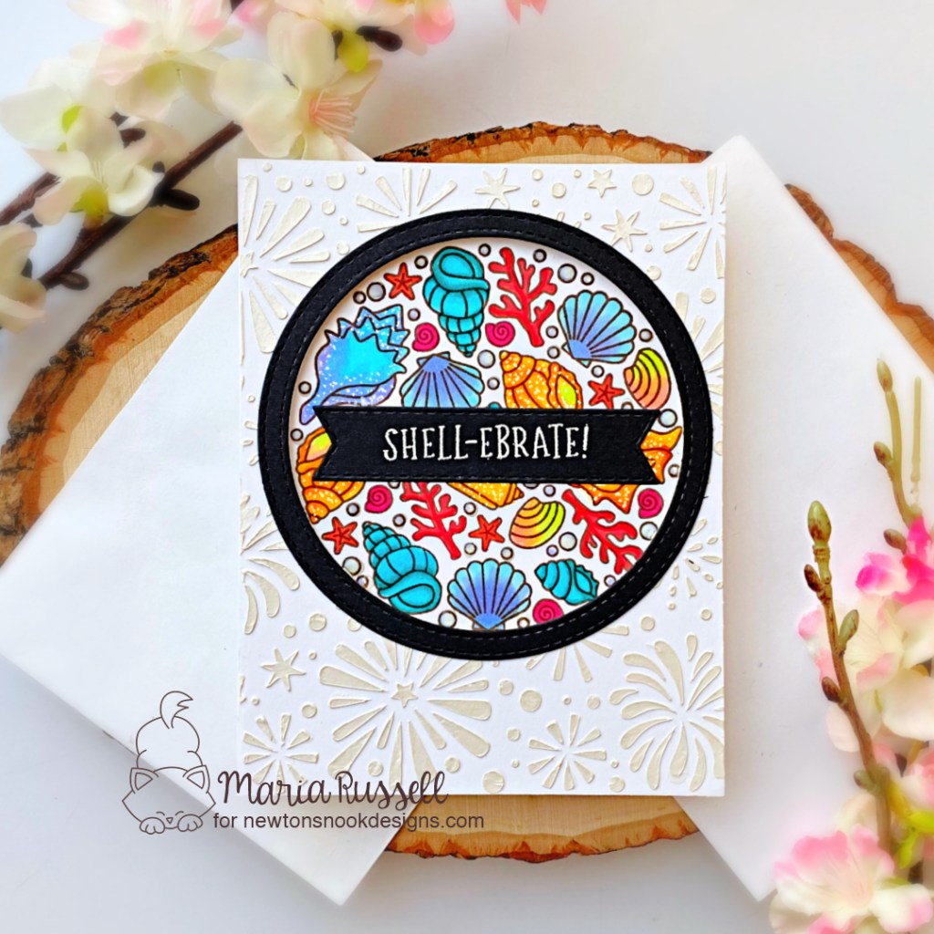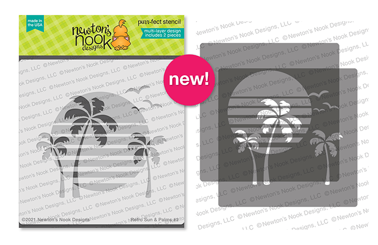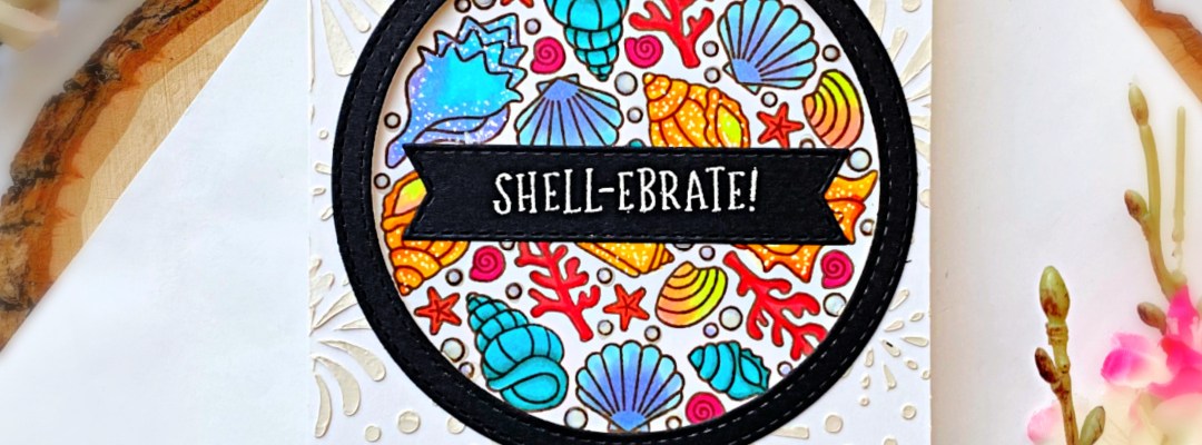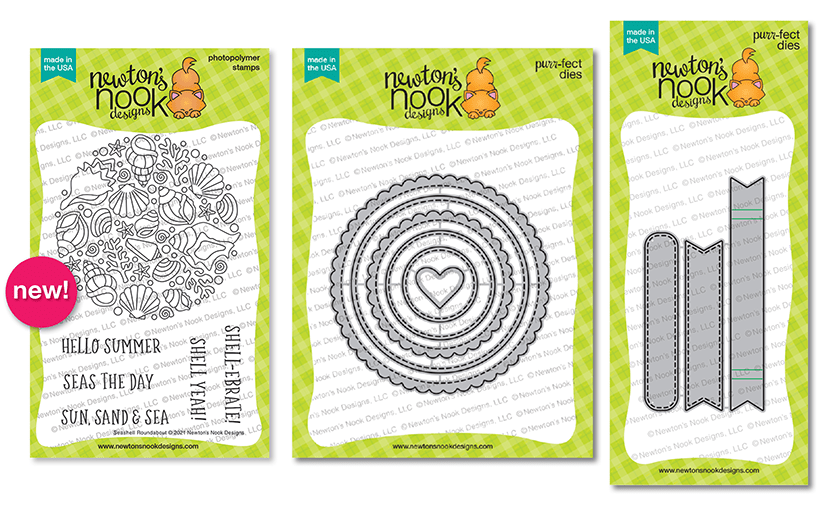 For Day 2, we are showcasing the Summer Moments and Newton’s Seashell stamp sets and their coordinating dies with the Retro Sun Stencil.