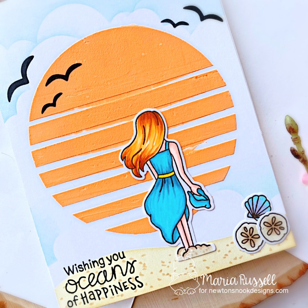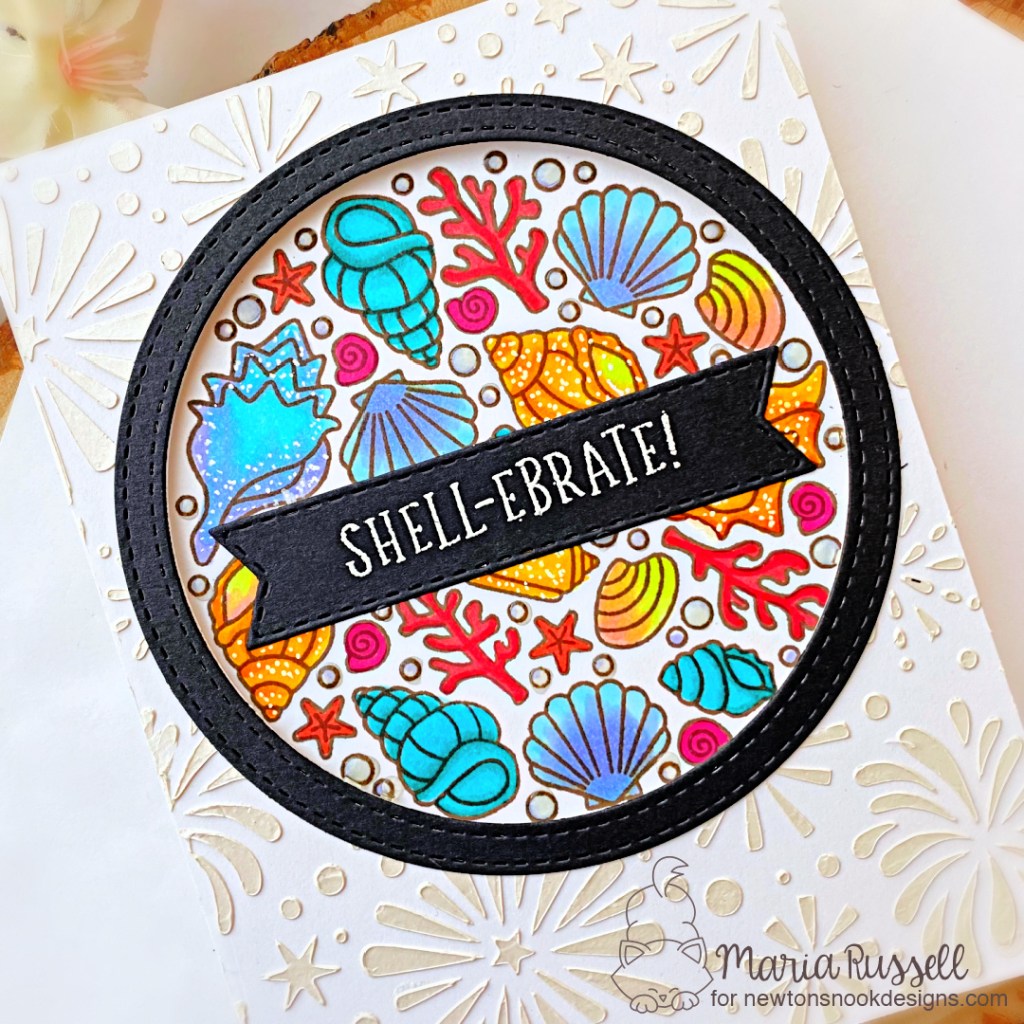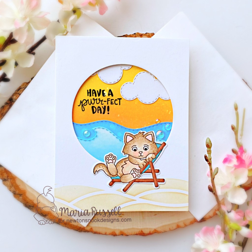 For Day 2, we are showcasing the Summer Moments and Newton’s Seashell stamp sets and their coordinating dies with the Retro Sun Stencil.