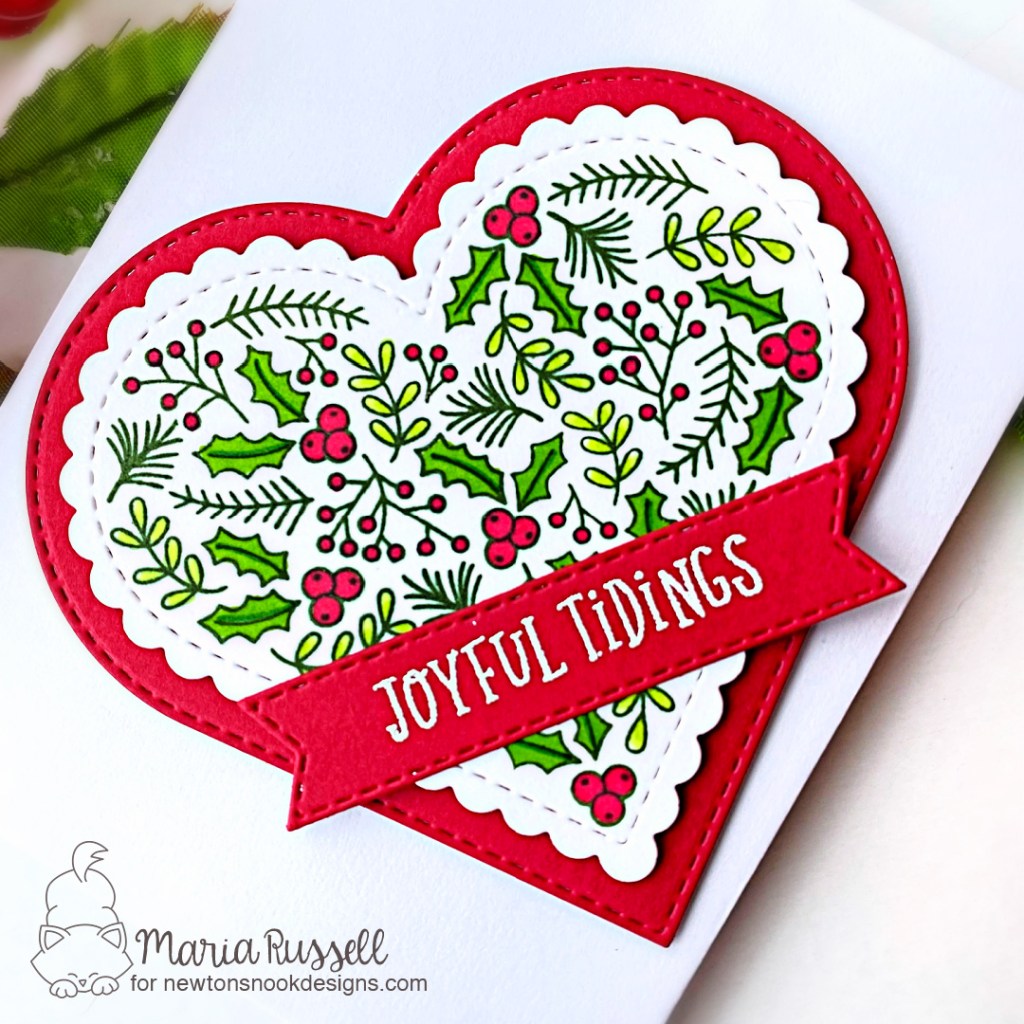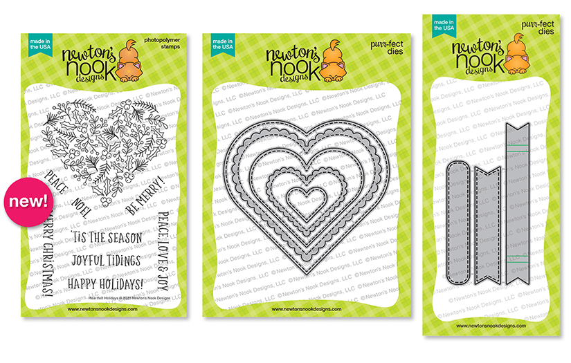 For a cohesive look, I only used some variations of green and red! Nothing too busy here! I just LOVE the simplicity of this stamp set and I am so happy that Newton’s Nook is adding more stamp set to match the Heart Frames Die Set.