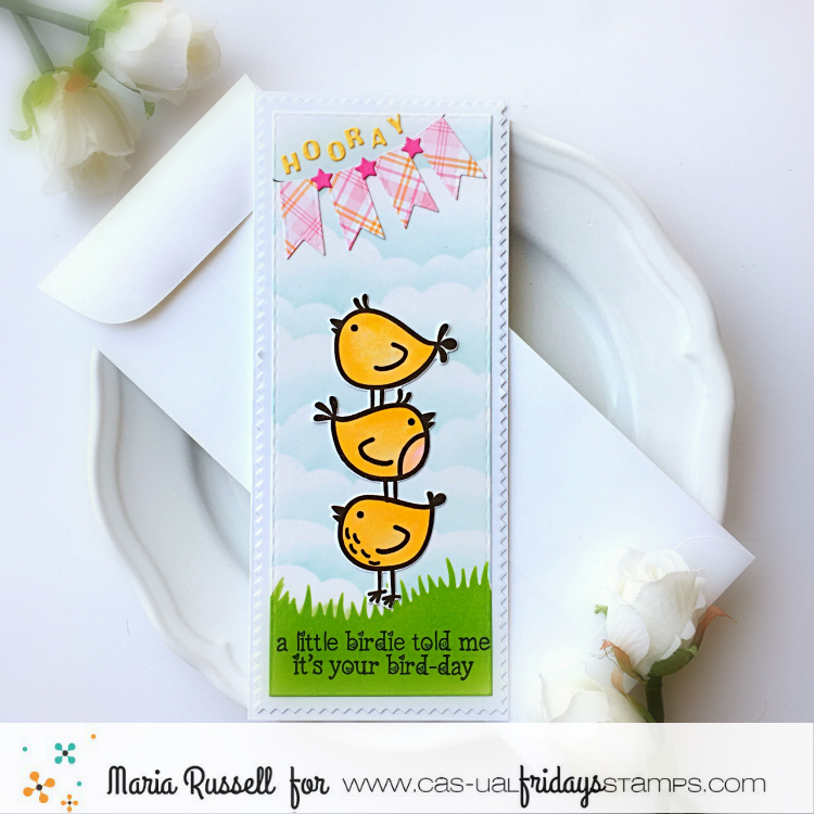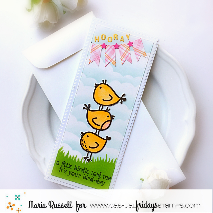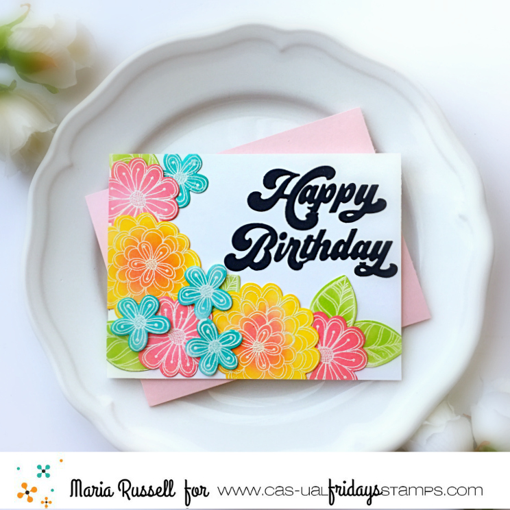 It’s the last day of the September release by CAS-ual Fridays Stamps and we are showcasing the Happy Birthday Fri-die. Be sure to comment on each release post this week for your chance to win a $25 mini shopping spree! A random winner will be chosen from one of the days so increase your odds by visiting with us all week. The winner will be announced on the CAS-ual Fridays blog post.