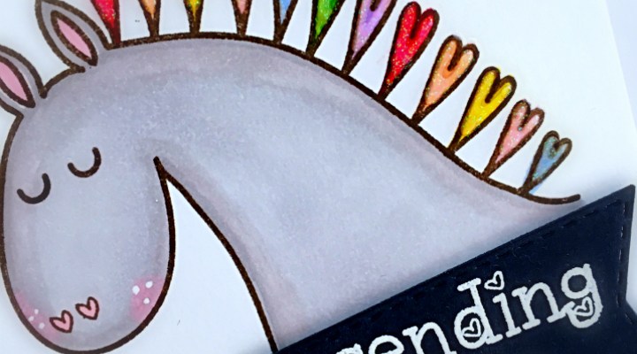Lastly, I die-cut some hearts and stamped the sentiment on some black strip of card stock and adhered to the card. Here’s a closer look: