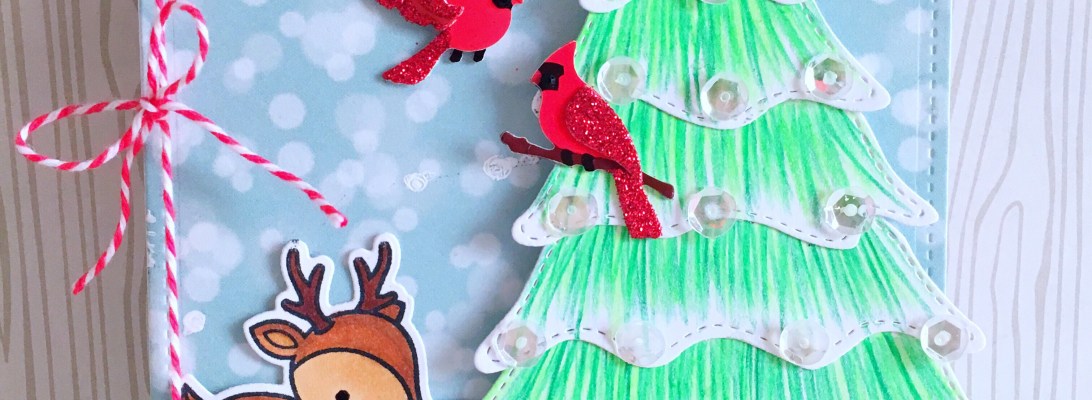 It’s Maria Russell here today and I am back today to share with you a Christmas card that I have made showcasing the Christmas tree die by Kat Scrappiness. Unfortunately I wouldn’t have a process video this time, as I am currently home in Orlando, celebrating Thanksgiving weekend with my family.