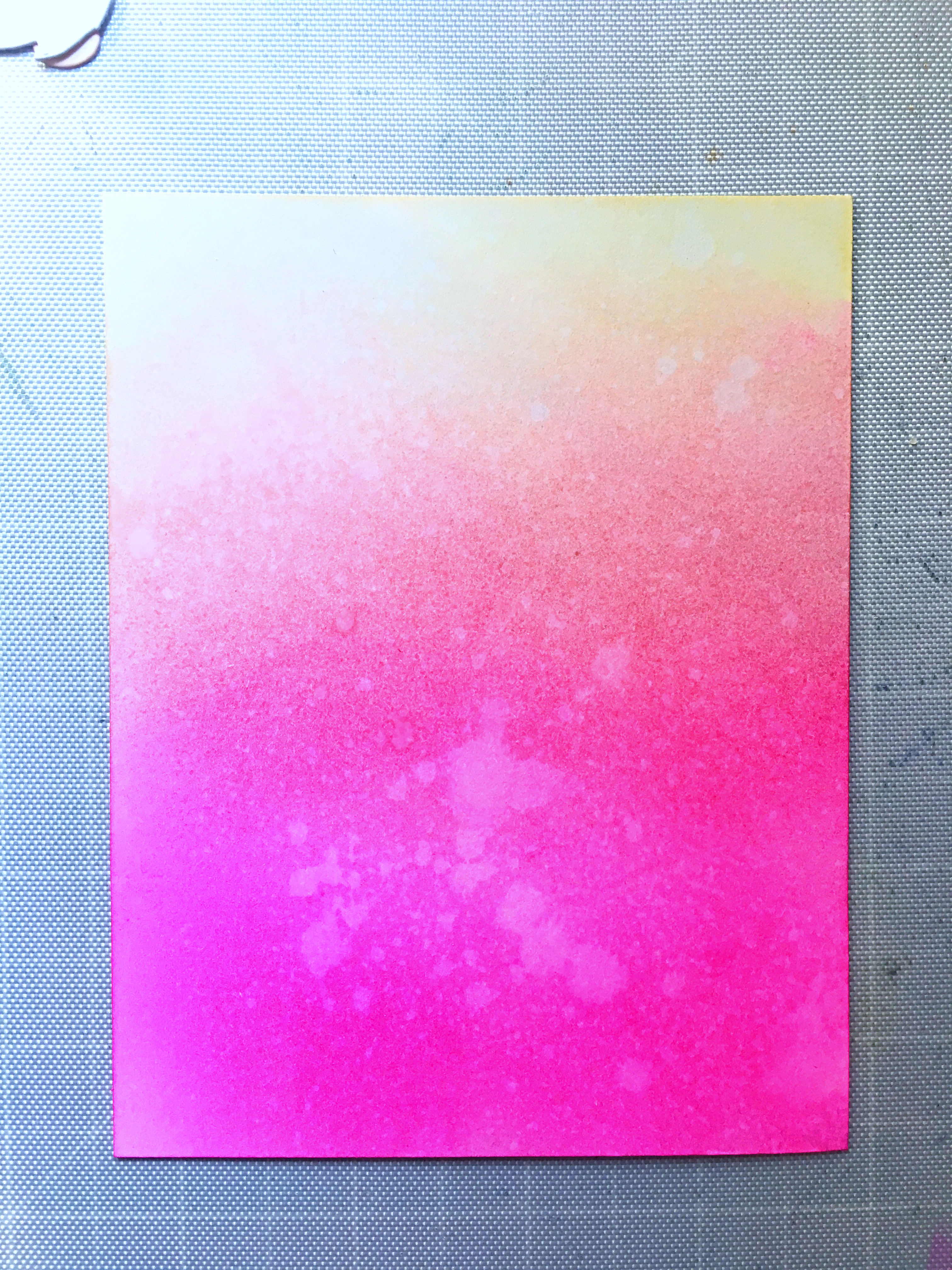 I sprayed the ink-blended background with some water and dabbed it with some paper towel to dry.