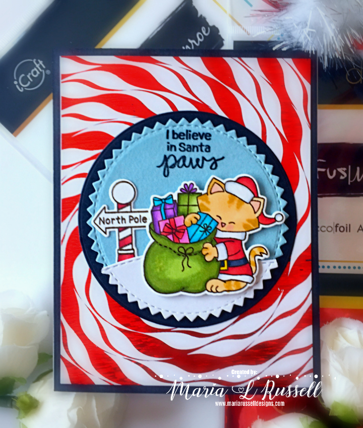 I finished the design by adding white diamonds sequins from Kat Scrappiness, Enamel dots from Doodlebug Design and adding the peppermint twine. Here is the card. I have also listed the supplies that I’ve used below. I hope you like it and somehow got inspired today. Have an amazing day!