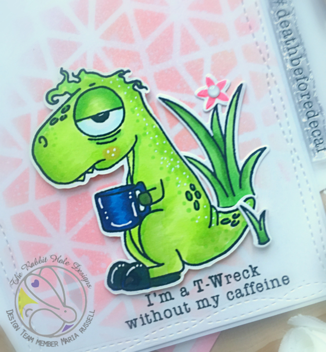 The Rabbit Hole Designs is a new stamp company. They have recently launched a couple of stamp sets and I ordered a few of them because I fell in love with the design. For my card below, I am showcasing the Caffeinated Cat 3×4 stamp set. When I saw this stamp, I knew I just had to have it. Honestly, what is not to love? I adore cats, I love coffee and I love being a mom! Okay to be honest I used to feel like this cat when my kids were little, haha! and I had a full-time job too! I don’t even know how I survived those days; I guess I had lots and lots of coffee!