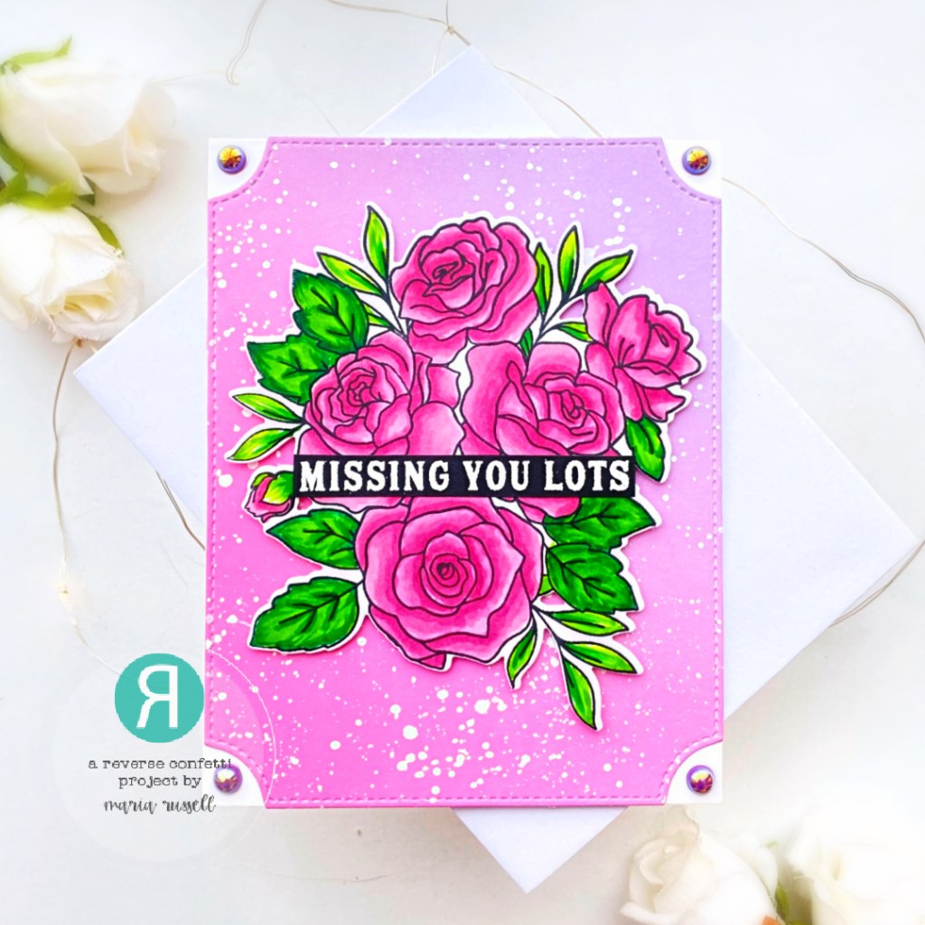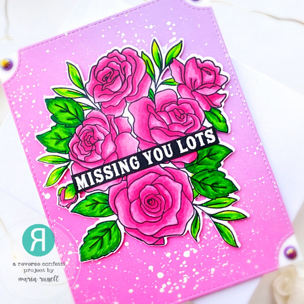 The images from the Roses Stamp Set were stamped on some X-Press It Blending Card and colored with alcohol markers. I used the coordinating die to cut it out and adhered on the card front with foam adhesive for added dimension. I finished the design by adding the sentiment strip. Here’s another look: