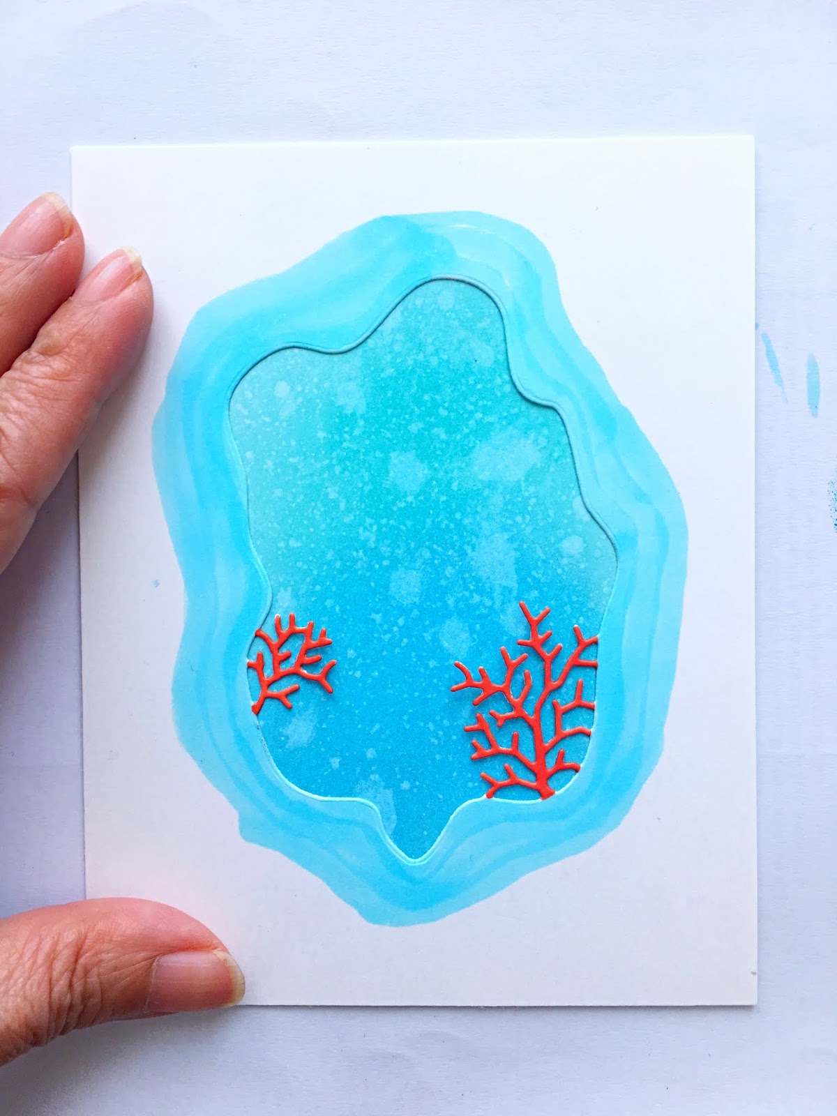 I pressed my Aged Mahogany ink pad onto an acrylic block and added some water, then used my watercolor brush to mix it well and flicked it onto my card panel for added texture.