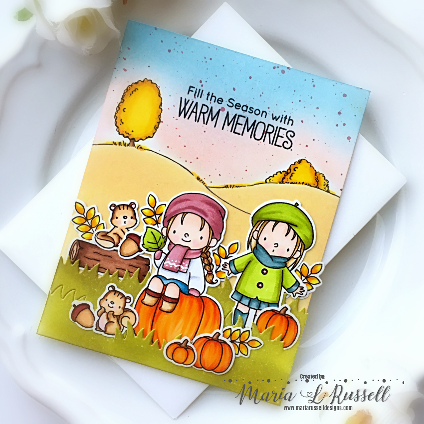 - die-cut some fall leaves using the Autumn Leaves Die Set. Adhere the same on the card..