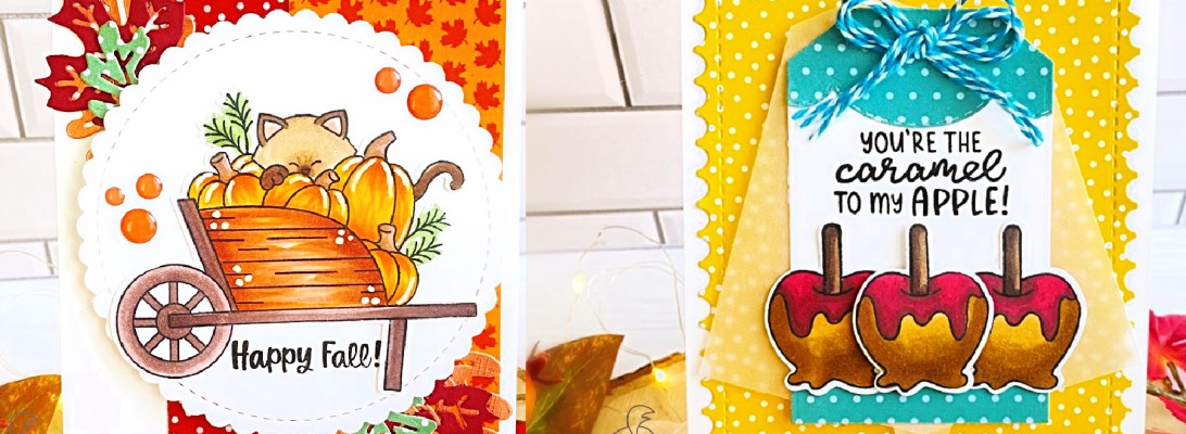 I have created two cards today for my final post, featuring the latest release. For the first project, I am showcasing the Newton’s Harvest Time Stamp Set + coordinating dies, along with a few of my favorite older dies.
