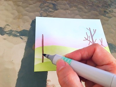 I added more depth by using different colors of Copic markers to create the leaves.